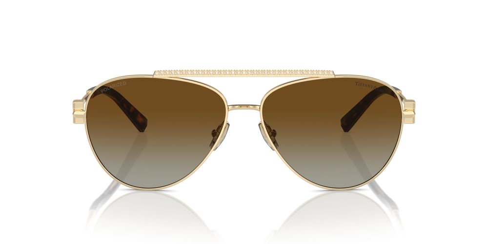 Indulge in timeless elegance with these exquisite Tiffany & Co. women's sunglasses. The TF 3101B model boasts a classic pilot shape, crafted from premium steel with a luxurious gold finish. The polarized brown lenses not only offer superior protection but also enhance visual clarity and reduce glare. These sunglasses effortlessly blend sophistication with functionality, making them perfect for the discerning woman who demands both style and performance. The iconic Tiffany & Co. design ensures you'll stand out in any setting, whether you're strolling along the beach or attending a high-profile event. With their durable construction and timeless appeal, these sunglasses are an investment in both fashion and quality. Experience the perfect fusion of luxury and practicality. Secure your pair today and see the world through a lens of refined beauty.