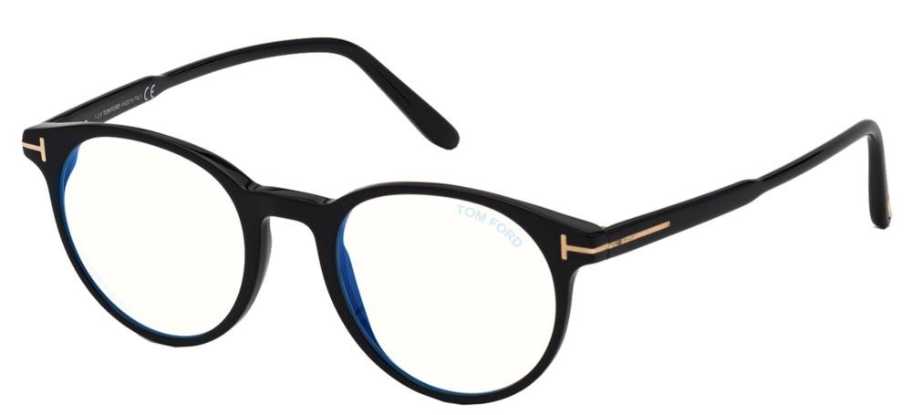 Tom Ford FT 5695 B BLUE BLOCK men round eyeglasses in glossy black acetate present original designer character and refined premium craftsmanship. The round frame balances bold presence with comfortable acetate construction and subtle metal detailing. Complete frame design holds adjustable blue filter lenses that reduce digital eye strain and offer blue light blocking without altering color. Authentic Tom Ford styling and precise fit make these glasses a modern essential for men who value genuine designer eyewear and lasting comfort. Shop the FT 5695 B BLUE BLOCK at Otticanet for premium protection and style.