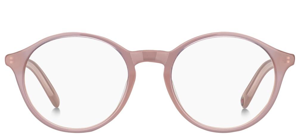 Tommy Hilfiger TH 1841 women's eyeglasses marry bold design with refined comfort. The round acetate frame in soft pink delivers authentic premium style while the complete frame construction supports adjustable lenses for a tailored fit. Lightweight yet sturdy, these eyeglasses showcase signature branding and meticulous craftsmanship ideal for fashion conscious women seeking original frames. Available at Otticanet. Explore the collection or buy your pair today.