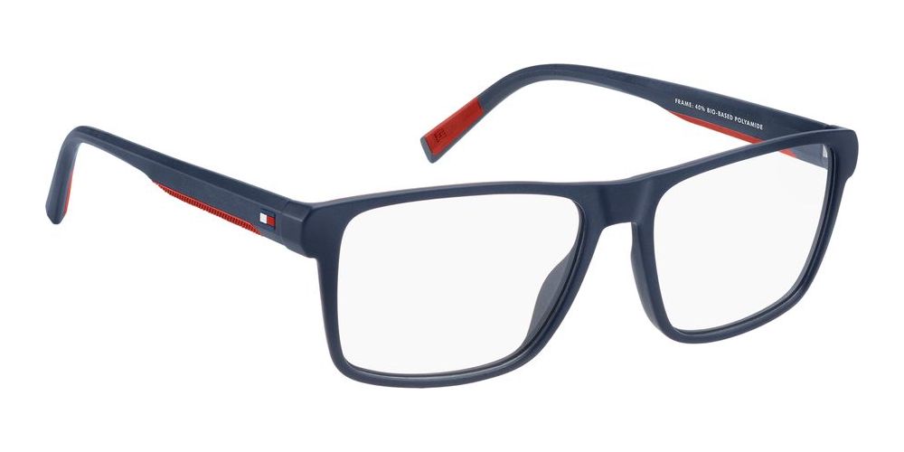 Introducing Tommy Hilfiger TH 2328 eyeglasses, designed for men who appreciate refined style and sustainable materials. The rectangular blue frame crafted from eco polyamide combines durability with a lightweight feel, offering both comfort and sophistication. Equipped with adjustable lenses, these eyeglasses ensure a personalized fit for your visual needs. Perfect for everyday wear, they reflect authentic craftsmanship and premium quality synonymous with Tommy Hilfiger's legacy. Enhance your eyewear collection with a pair that seamlessly merges contemporary design with responsible innovation. Explore the elegance and functionality of the TH 2328 and choose the superior choice for your vision.