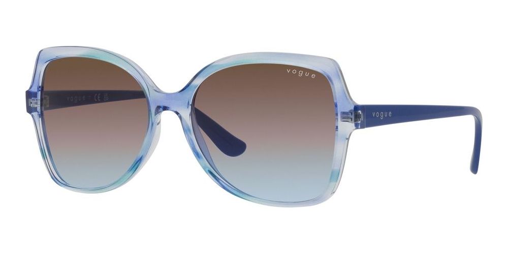 Enhance your look with these original Vogue sunglasses for women. The butterfly-shaped frame in injected blue material is complemented by green and light blue pink shaded lenses in polycarbonate. The adjustable lenses ensure optimal vision in any light conditions. The VO 5488S model features a timeless design and a captivating color combination. With a size of 56/16/140, these sunglasses are both stylish and comfortable to wear. Elevate your fashion game with these trendy and exclusive Vogue sunglasses, available on Otticanet. Perfect for adding a touch of sophistication to any outfit.