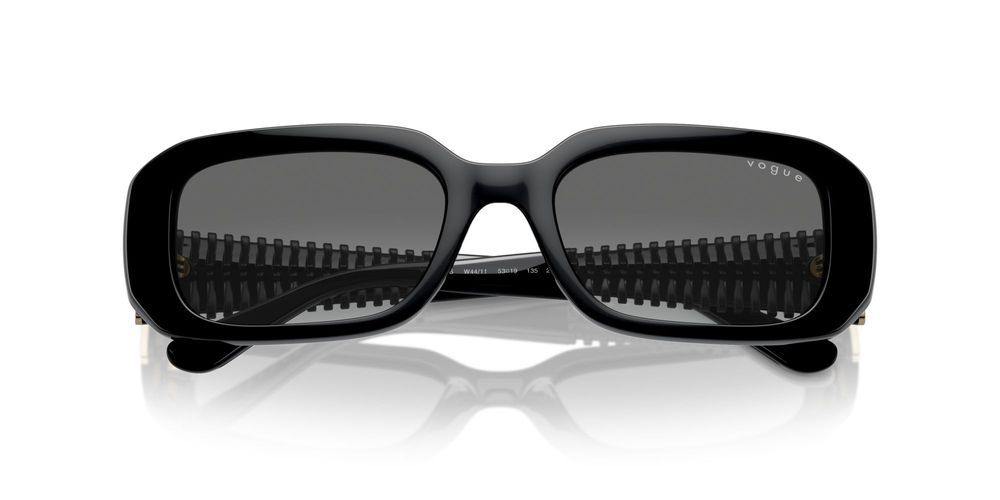Elevate your style with these Vogue women's sunglasses in the trendy square shape. The black propionate frame and grey shaded lenses exude sophistication and glamour. With a size of 53/19/135, model VO5565S is the perfect accessory for any outfit. The adjustable lenses ensure optimal vision and comfort. Made with high-quality materials, these original Vogue sunglasses are a must-have for fashion-forward individuals. Shop now on Otticanet for the best selection of authentic designer eyewear.
